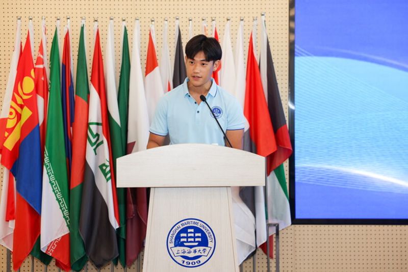 来自新加坡南洋理工大学的交换生代表陈俊乐(EleosTan)分享了初到学校的兴奋感受。他表示,上海作为国际航运中心为学习海事管理提供了丰富的实践资源与行业视角,期待通过本学期交换学习,提升专业素养并深入了解中国航运政策与文化环境,成为中新青年交流的桥梁。