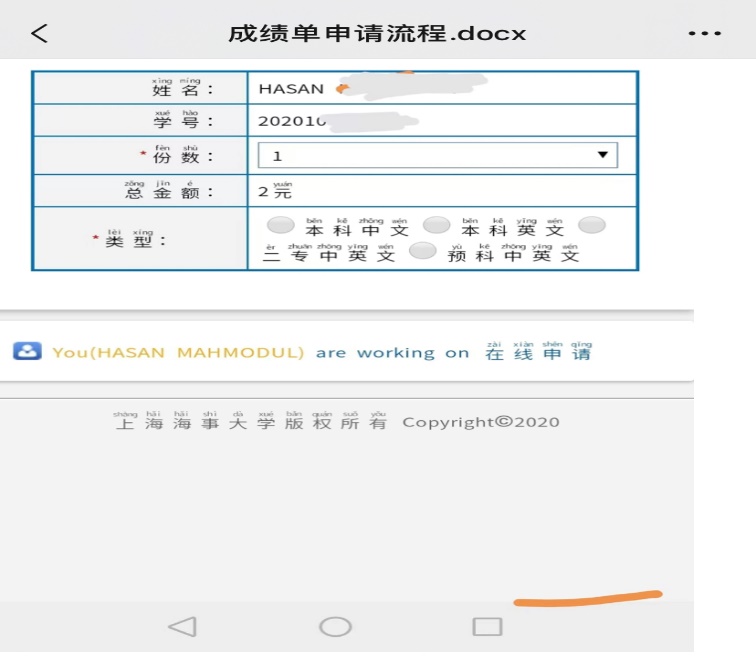 5. Bring the Chinese transcript and the printed English translation form. After checking the information, go to the school service service center for review and stamping.